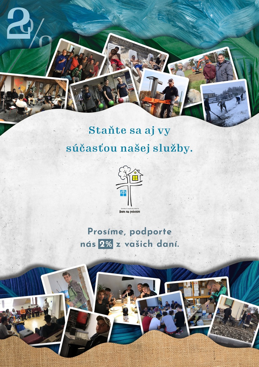 ak sa chcete aktívne podieľať na službe Strediska Evanjelickej Diakonie vo Veľkom Slavkove, 2% z vašich daní nám veľmi pomôžu pokračovať vo všetkých našich projektoch a aktivitách.